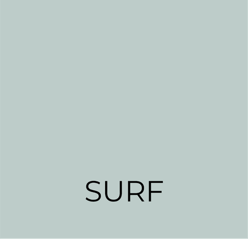Surf is grey blue that captures the spirit of the sea. It complements a variety of design styles and pairs well with cool neutrals.